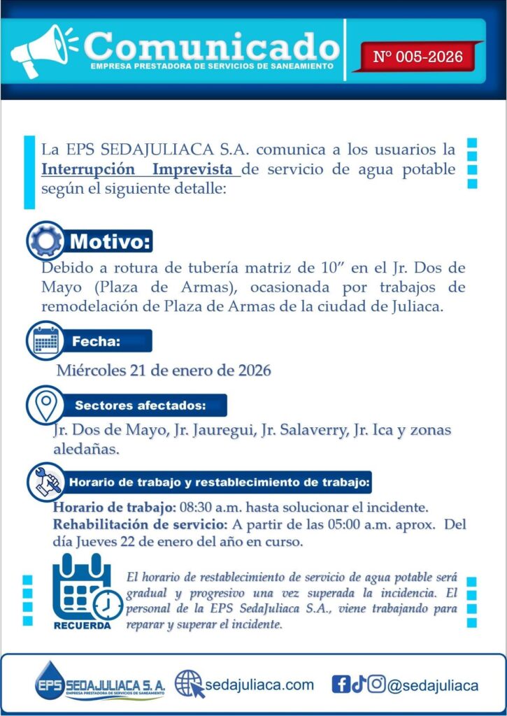CORTE IMPREVISTO DE SERVICIO DE AGUA POTABLE