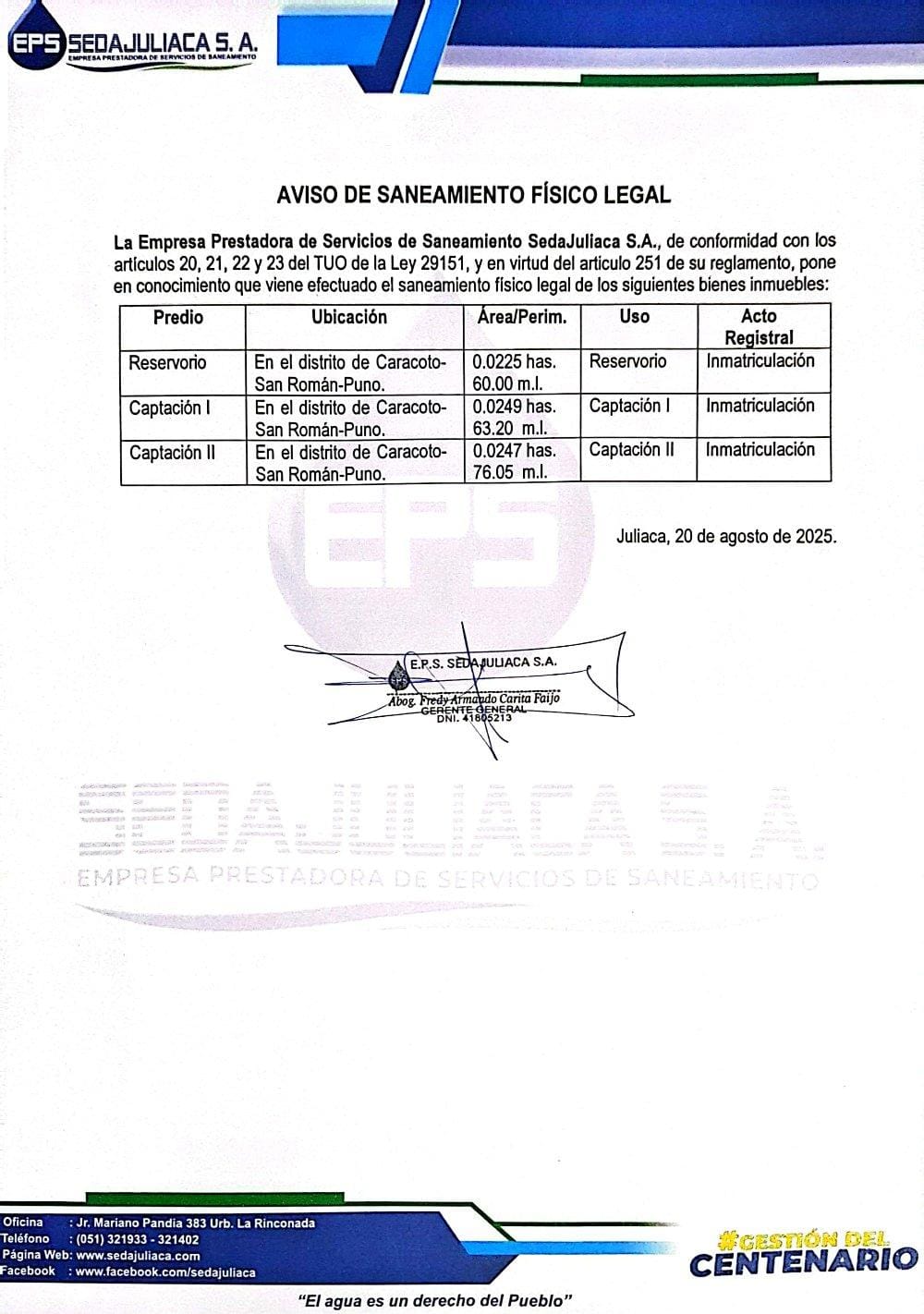 • OTASS – EPS SEDAJULIACA S.A.